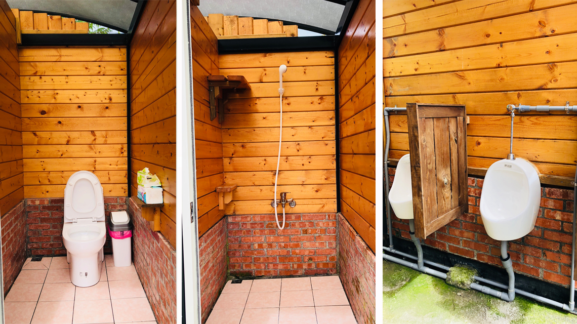 竹雞區 男女共用 : 小便斗2座、蹲廁1間、座廁1間、淋浴間2間