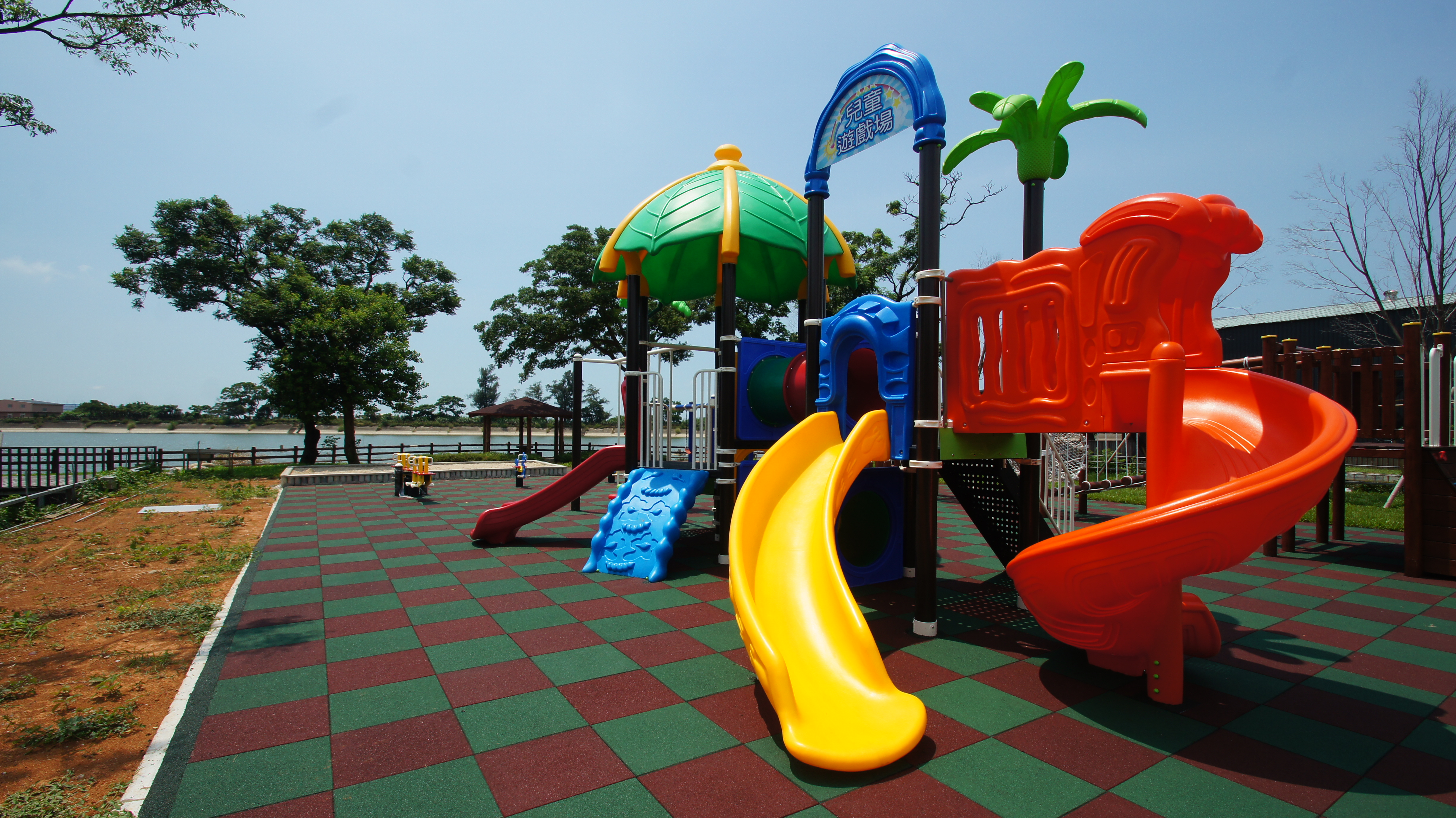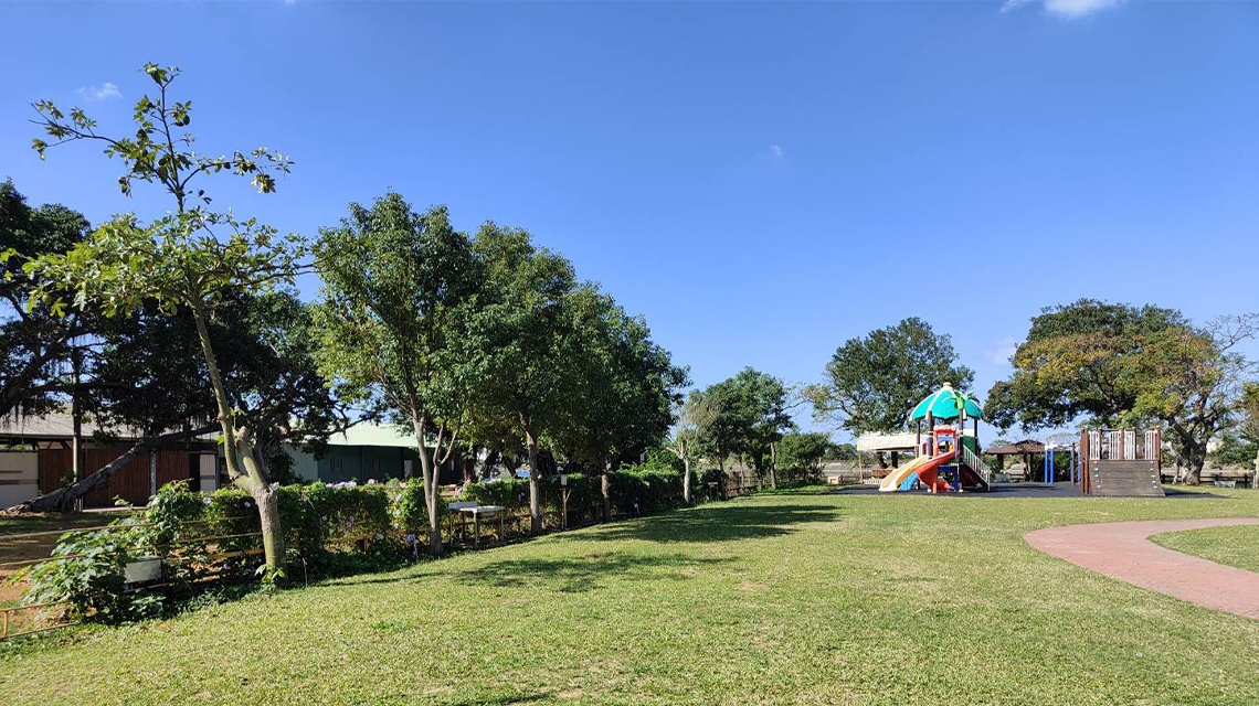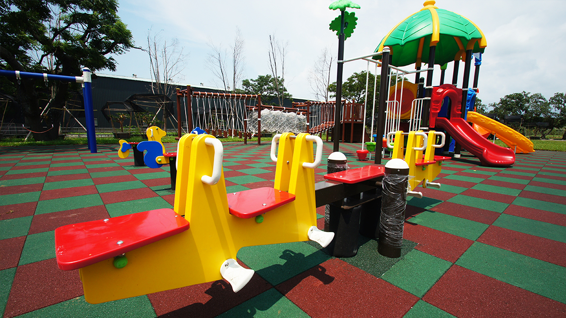 因為是在平地 有廣大的草坪給小朋友們玩樂 營區的兒童遊樂設施也非常的齊全