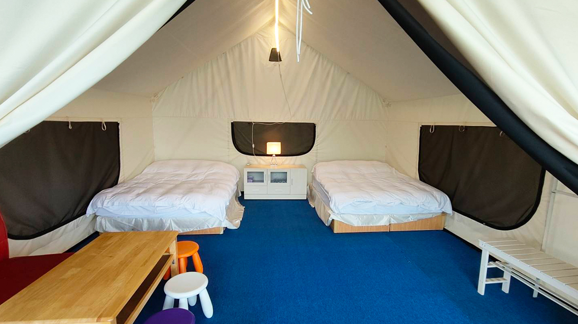 ※ 帳篷內皆附有:4瓶礦泉水、床、寢具、分離式冷暖氣機
