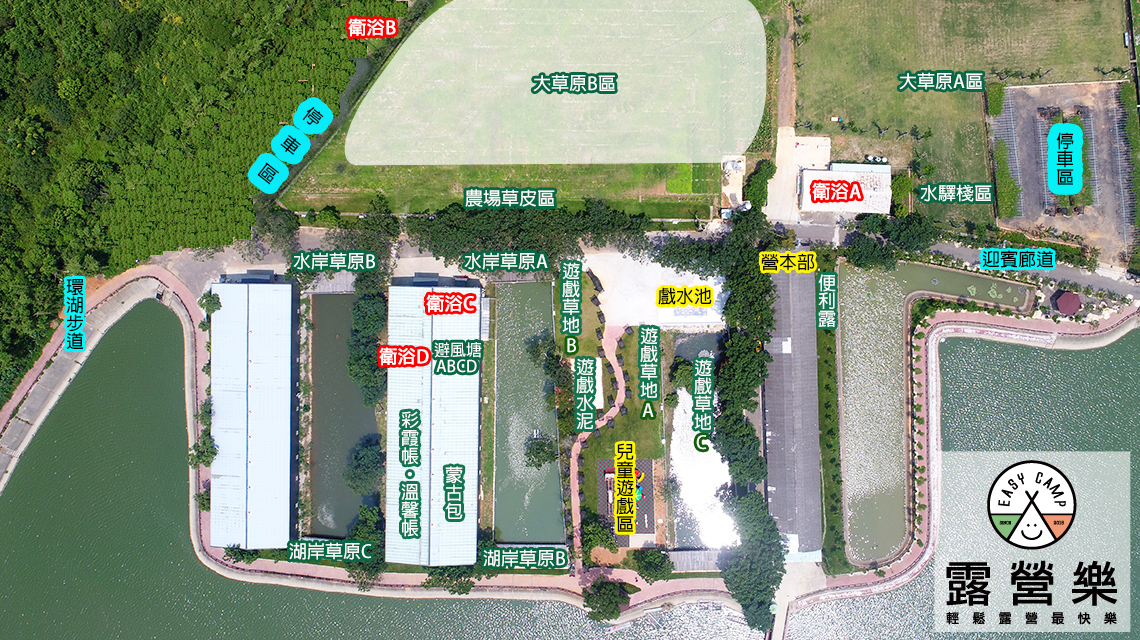 | 湖岸草原B(2帳) | 草地區 | 5X8公尺 | 2 帳 | $800 | $1200 | $1200 | $1200 | |