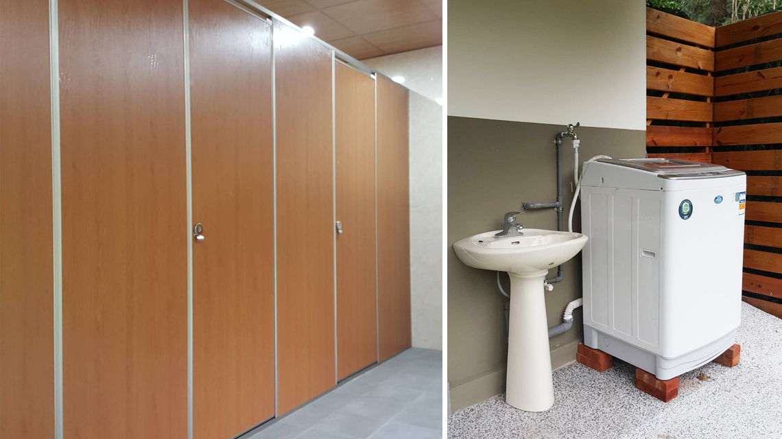 雨棚棧板A、B區 明亮乾淨的衛浴設施 附洗衣機(需自備洗衣粉)