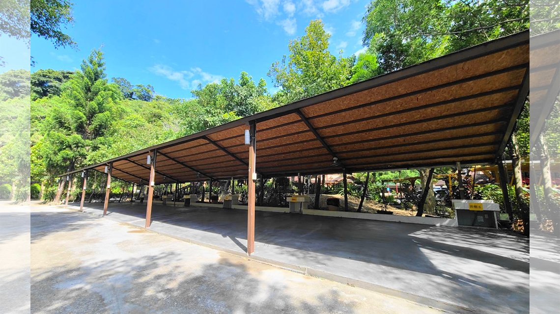 景觀雨棚區:水槽 6座、電箱 6座,集中停車