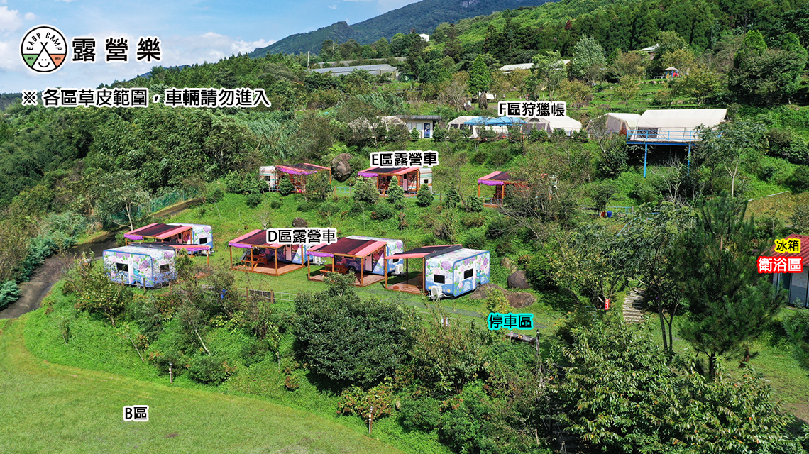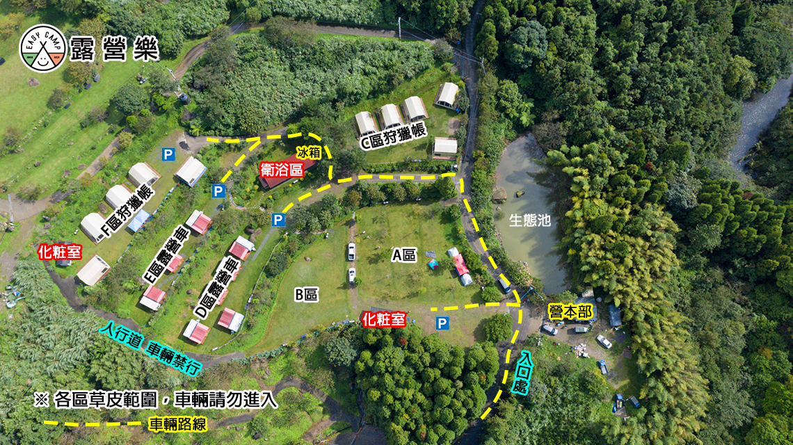 ※ 停車配置:各區設有停車區,有推車可使用,車輛嚴禁上草皮。