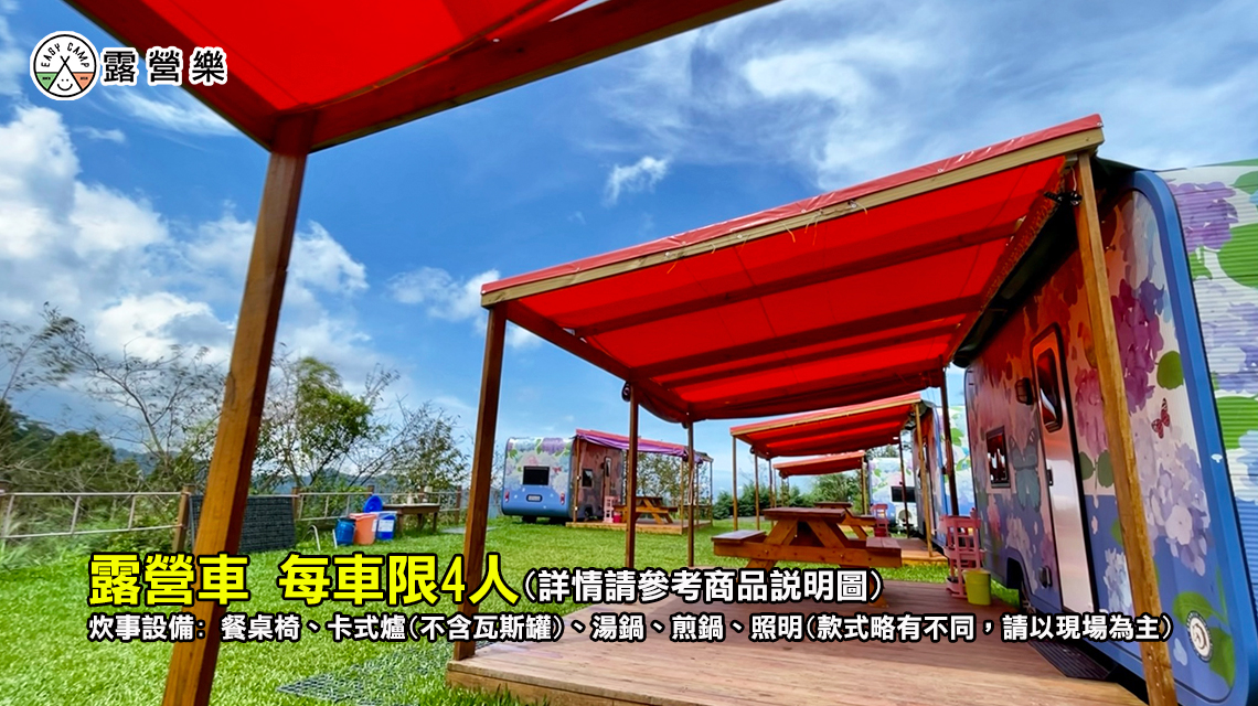 ●每台車限住4人,最多可再加1人清潔費300元(不附寢具備品)(6歲以下計人不計費)。