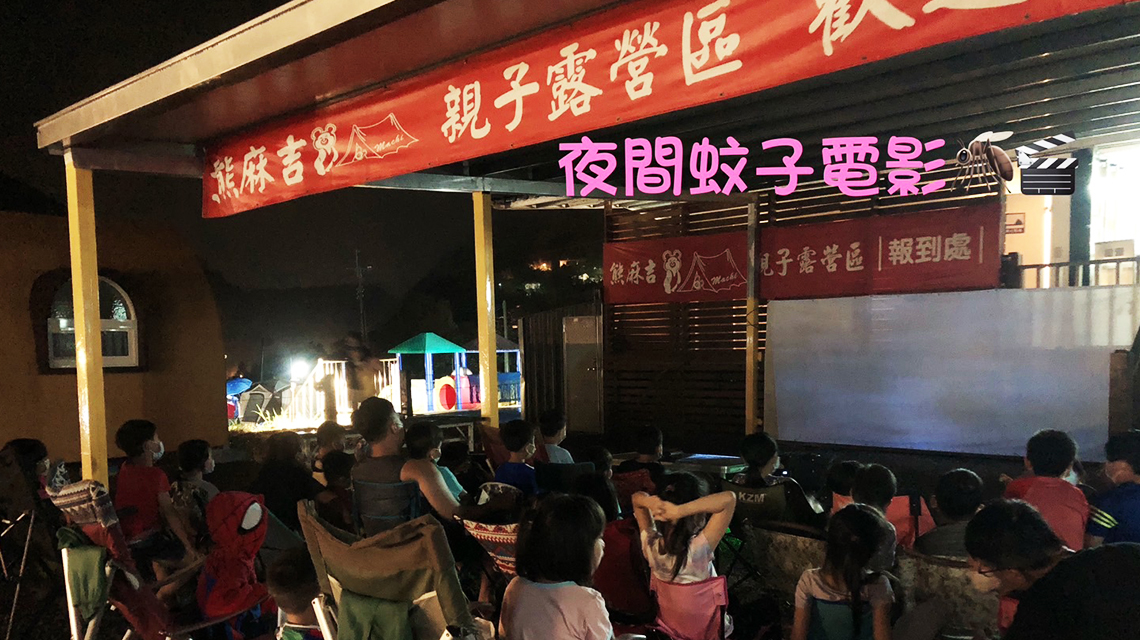 園區夜晚還有電影時間,小朋友們安靜的排排坐 ~