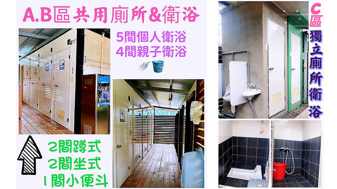 ※ 每營位限4人使用,第5人起每人300元清潔費(每帳最多可加2人,1歲以下計人頭不計費)。