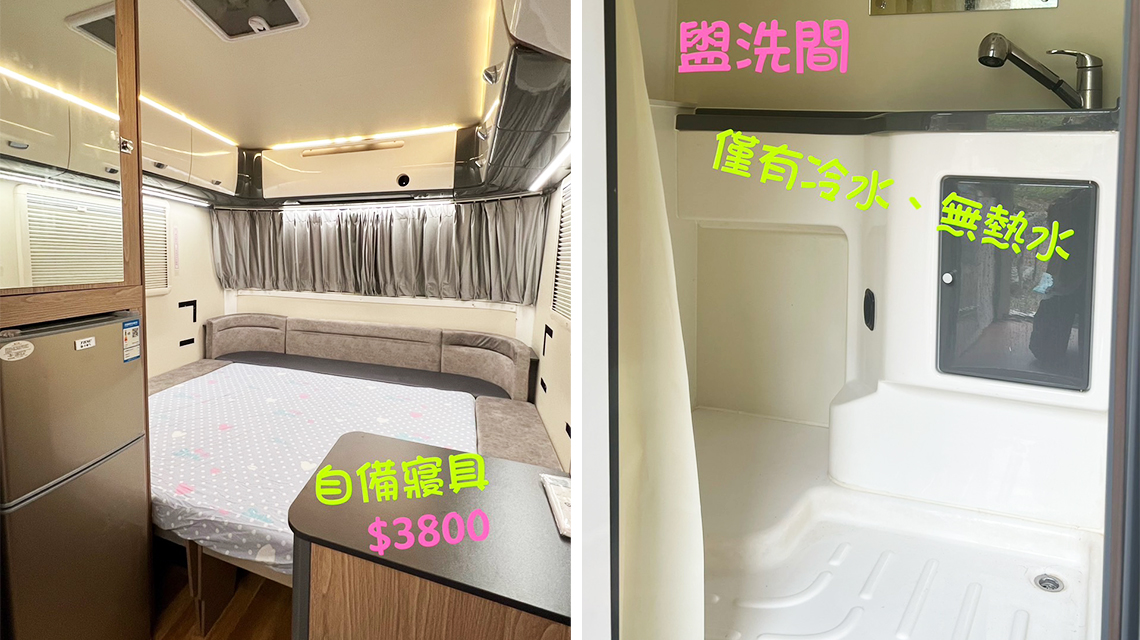 ◎ 室內配備:冷暖氣恆溫、冰箱、不提供車內盥洗
