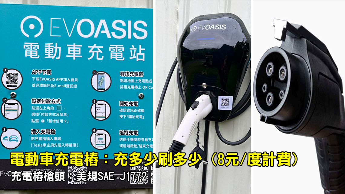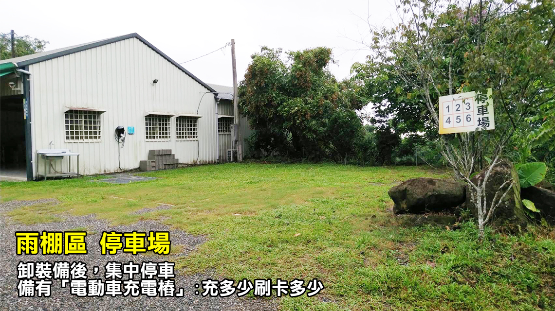 ● 電動車充電樁:設有自行刷卡給付系統、充多少刷多少 (8元/度計費)。