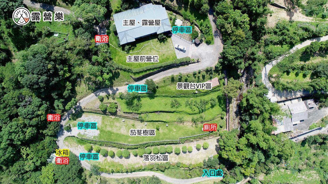 主屋前營位:露營屋及營位都在此,非常適合家族出遊