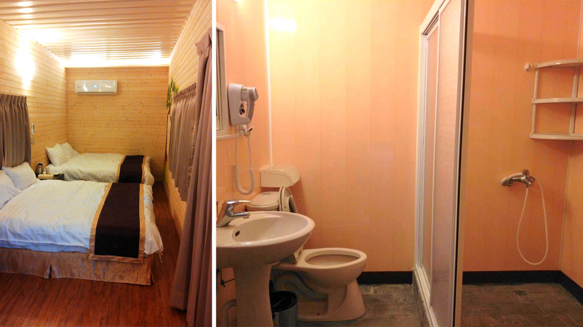 配置二大床寢具、冷氣、電扇、獨立衛浴