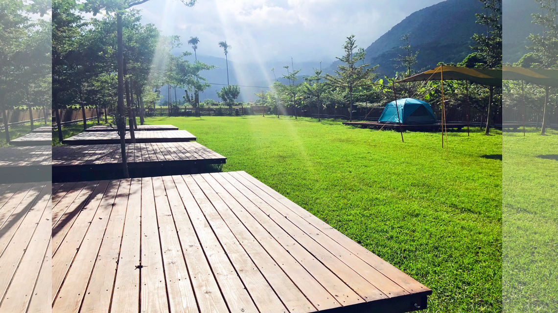 草地營位、木棧板任君選擇(棧板週圍裝有扣環可固定營繩,牢固安心)