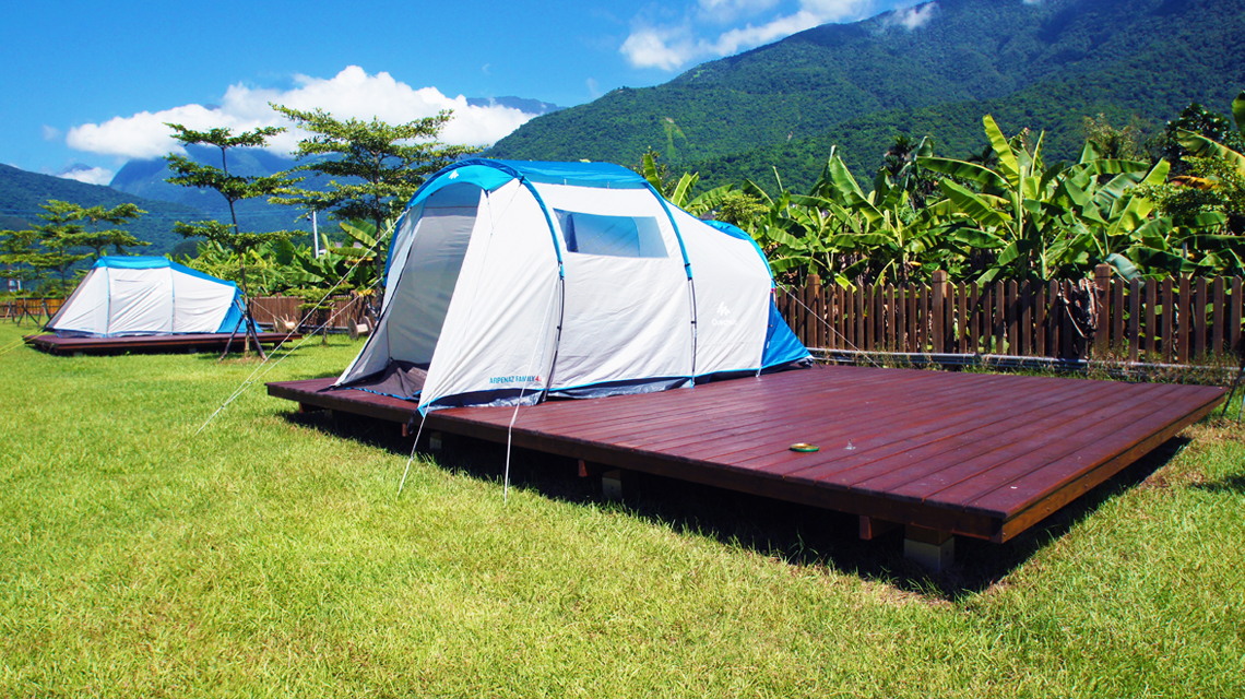 帳蓬可以搭在木棧板上非常舒適,每個營位都有樹蔭,白天不會遭到太陽曝曬,整體而言很chill !