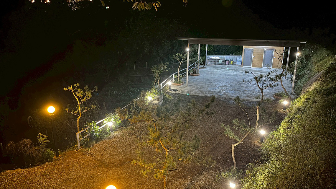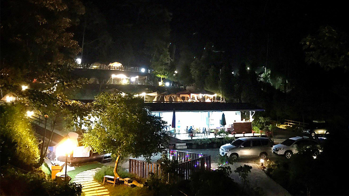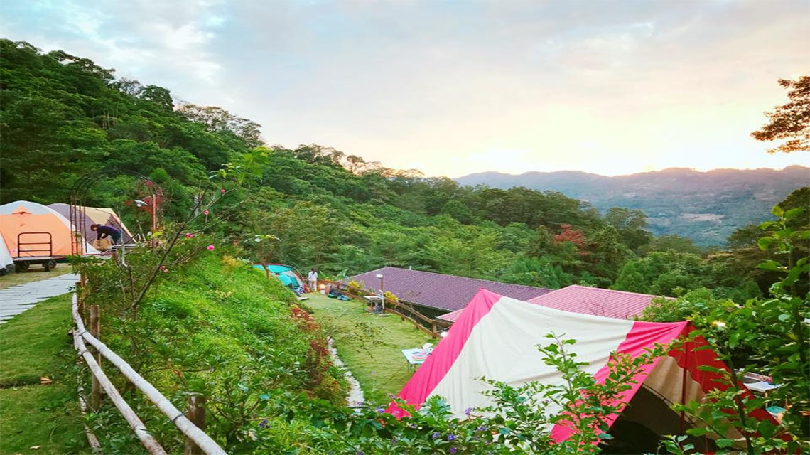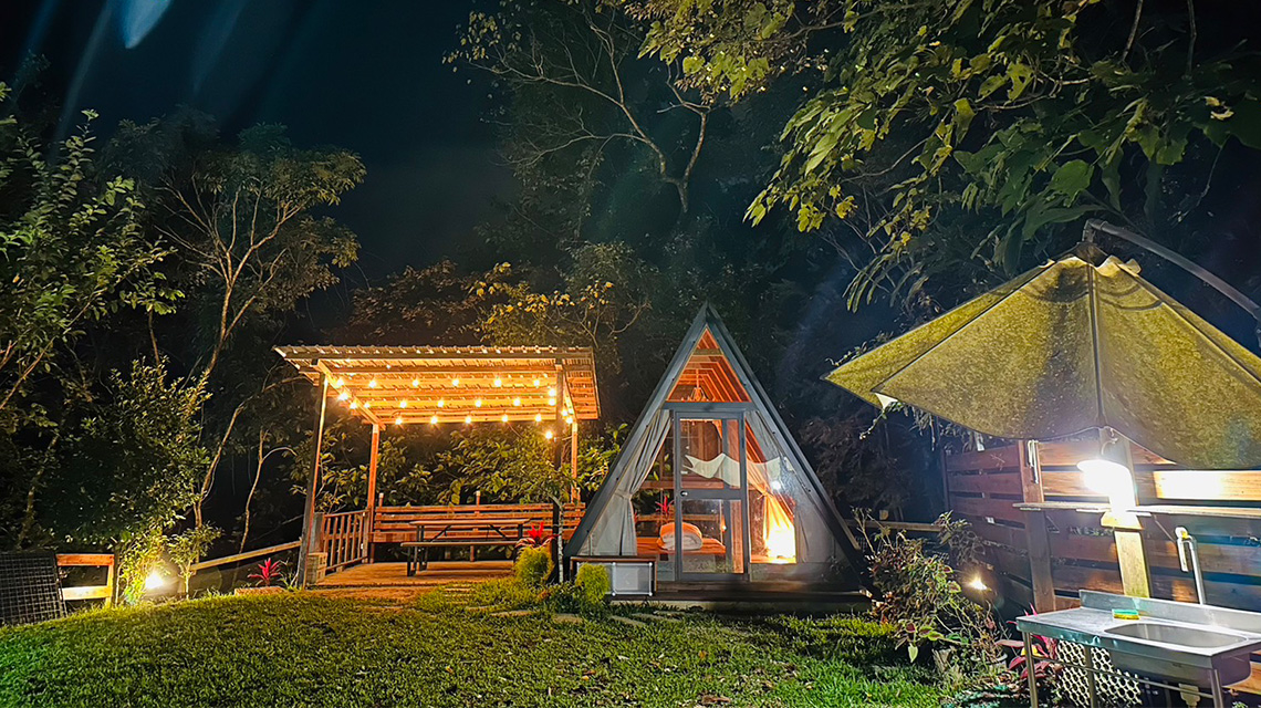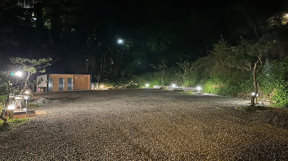 夜晚帳篷燈火相映 造景庭園浪漫相伴