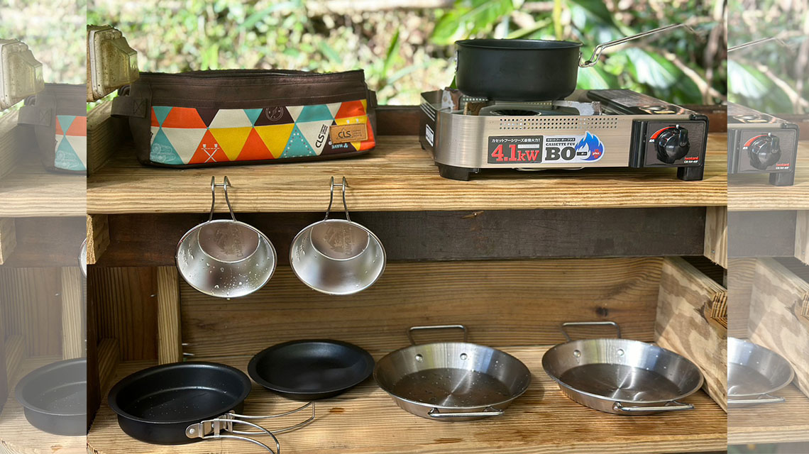 輕露營雙人帳所提供炊具配備卡式爐、炊事用具組(碗盤、餐具、鍋具、鏟勺)