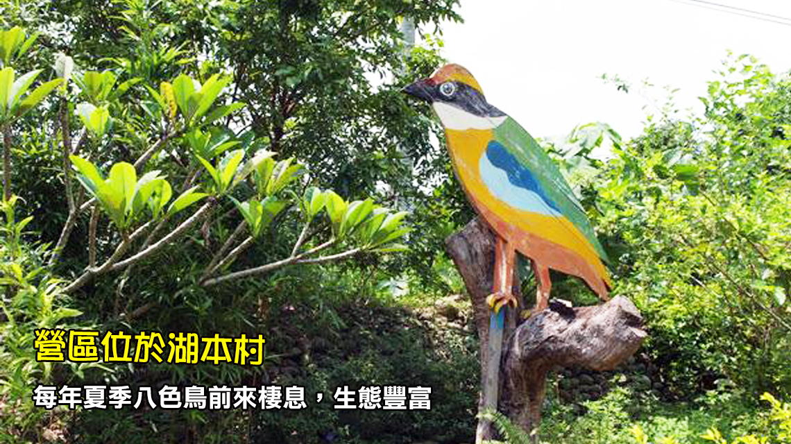營區位於湖本村 每年夏季 八色鳥前來棲息 生態豐富