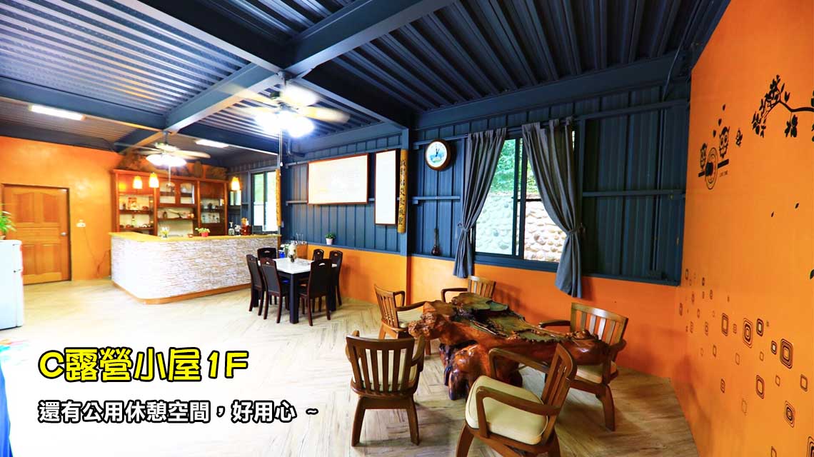 ※ C露營小屋- 此區的客廳區+小廚房+吧檯+冰箱為2間套房共用