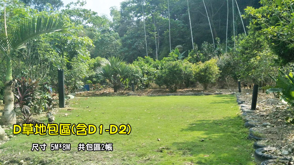 D草地包區(內含D1-D2共2帳) | 草地區 | 5Mx6M | 1 區 | - | $2400 | $2600 | $2800 | |