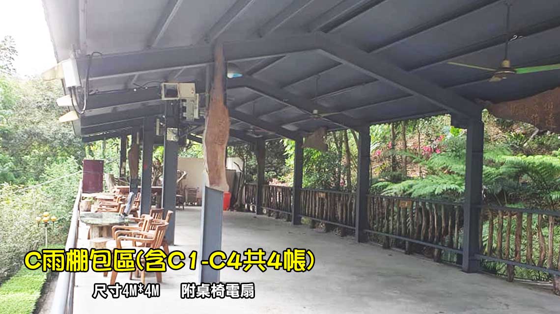 C雨棚包區(內含C1-C4共4帳) | 雨棚水泥區 | 3M*4M | 1 區 | - | $4800 | $5200 | $5600 | |