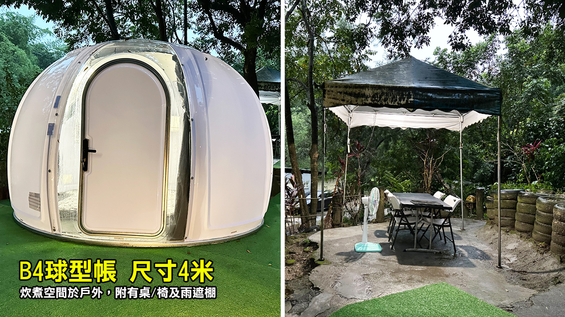 B4球型帳 | 限住2大2小 | 4米 | 1 帳 | - | $2800 | $3000 | $3200 | |