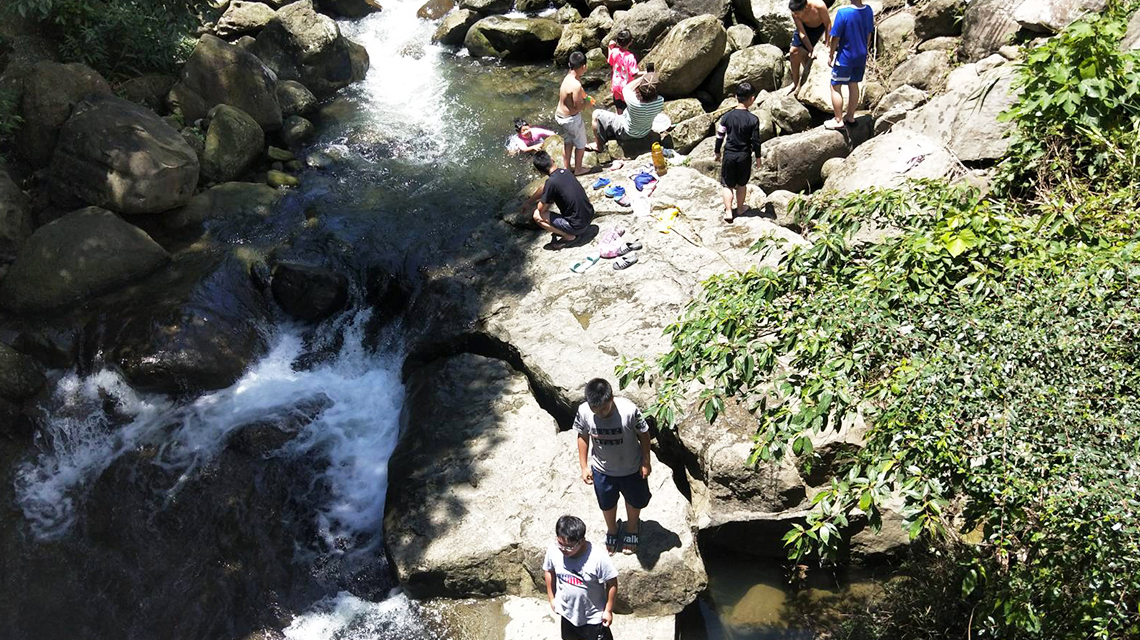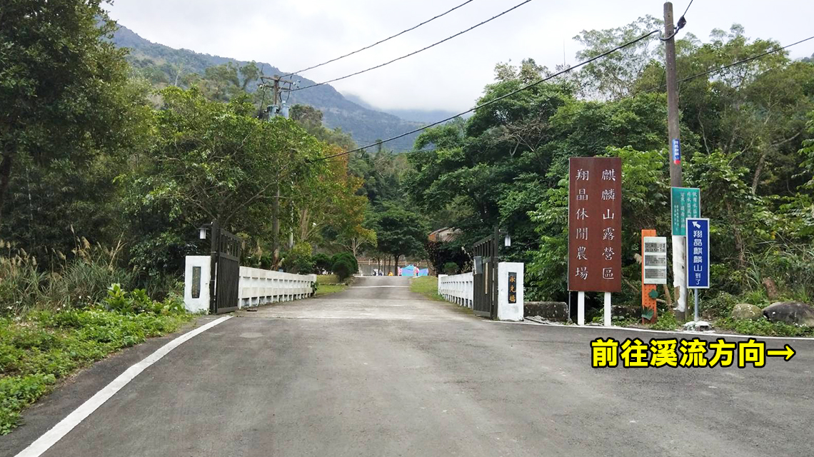 營區入口處旁可通往溪邊玩水,大人需陪同並注意安全