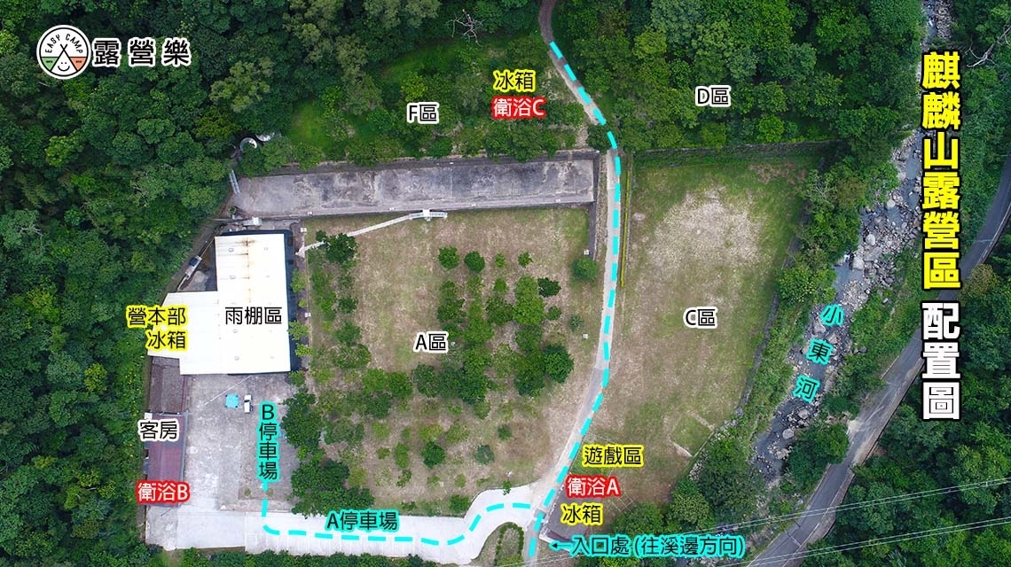 F區:水槽/電源5座(請備延長線15M以上),車停營位旁