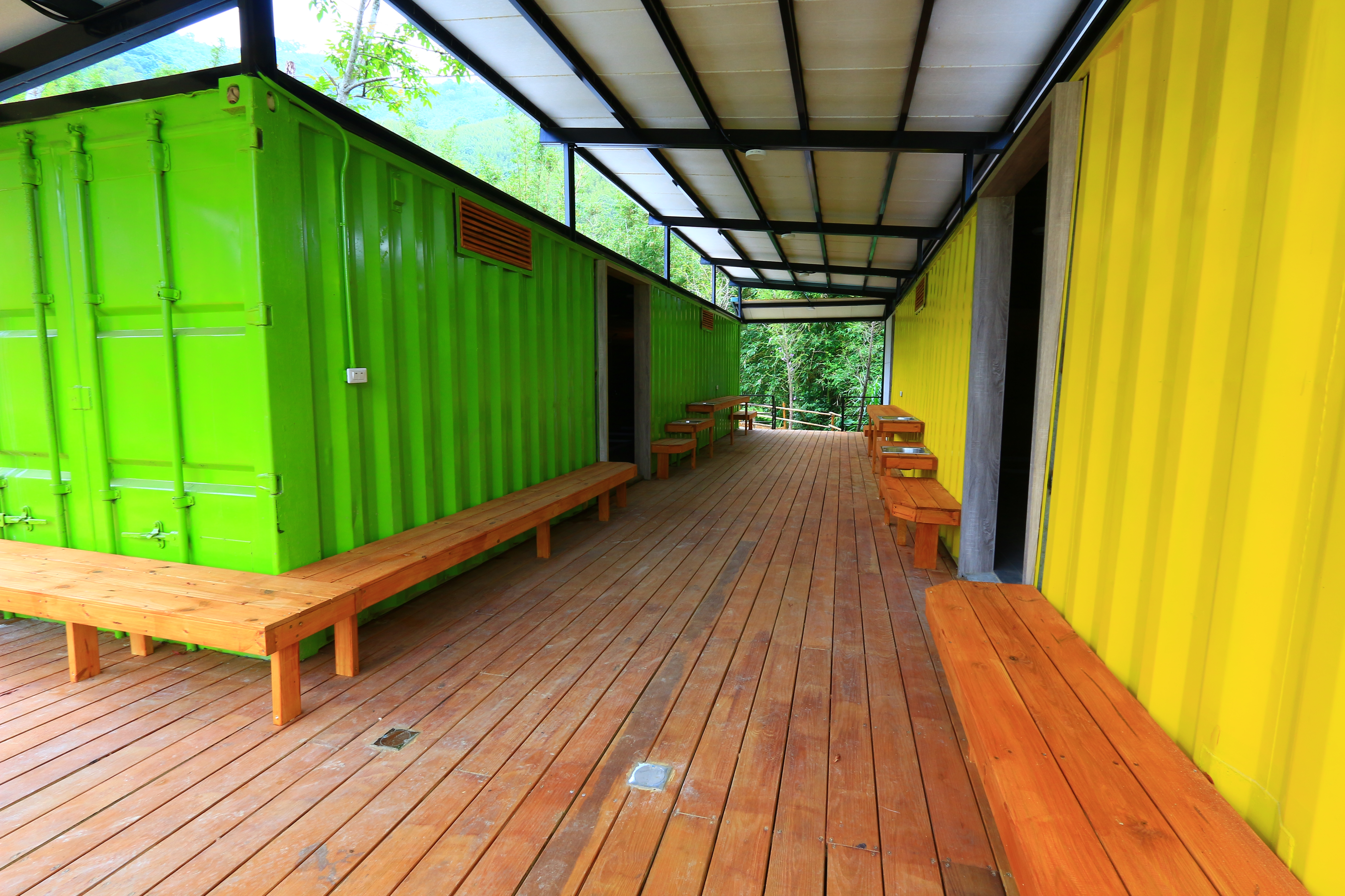 ●(一)輕露營C(6人)位於2F,含衛浴,附冷氣、電視、冰箱、床寢具、電熱水瓶、沐浴,屋外露台區可炊煮(禁用炭火)。