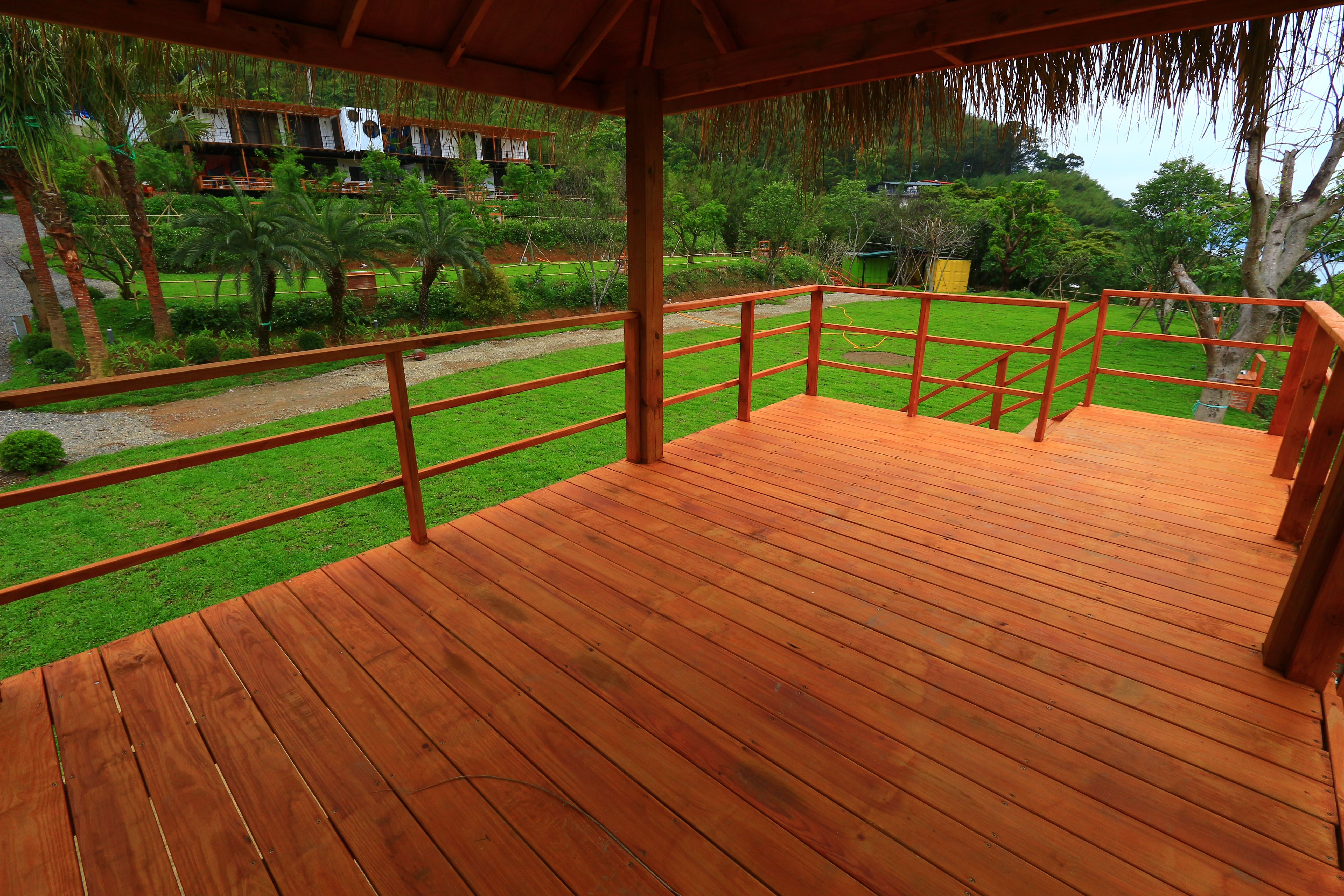 ●(一)輕露營A(2人)位於2F,含衛浴,附冷氣、電視、冰箱、床寢具、電熱水瓶、沐浴,屋外露台區可炊煮(禁用炭火)。