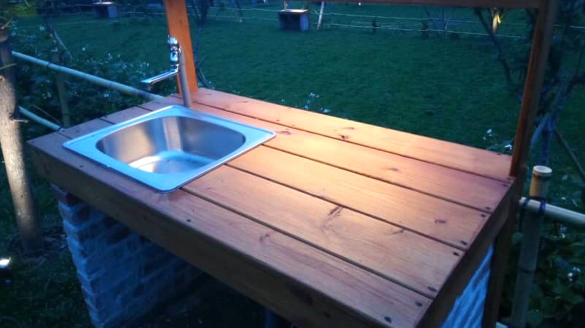 ●(二)輕露營A(2人)位於1F,含衛浴,附冷氣、電視、冰箱、床寢具、電熱水瓶、沐浴,屋外露台區可炊煮(禁用炭火)。