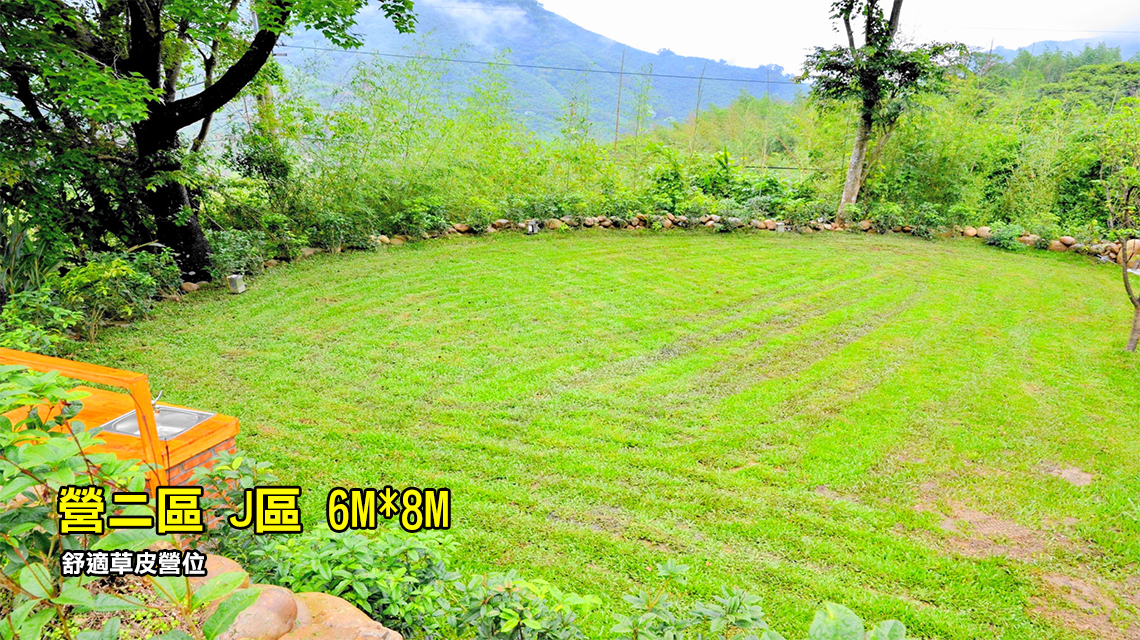 1. J區位於全營區最低點,完全沒有風景。其他位置的草地都修整得很乾淨,但我們入住時的J區感覺疏於整理,小黑蚊非常非常多!而且幾乎完全沒有風,應該被地勢跟樹叢擋光了。