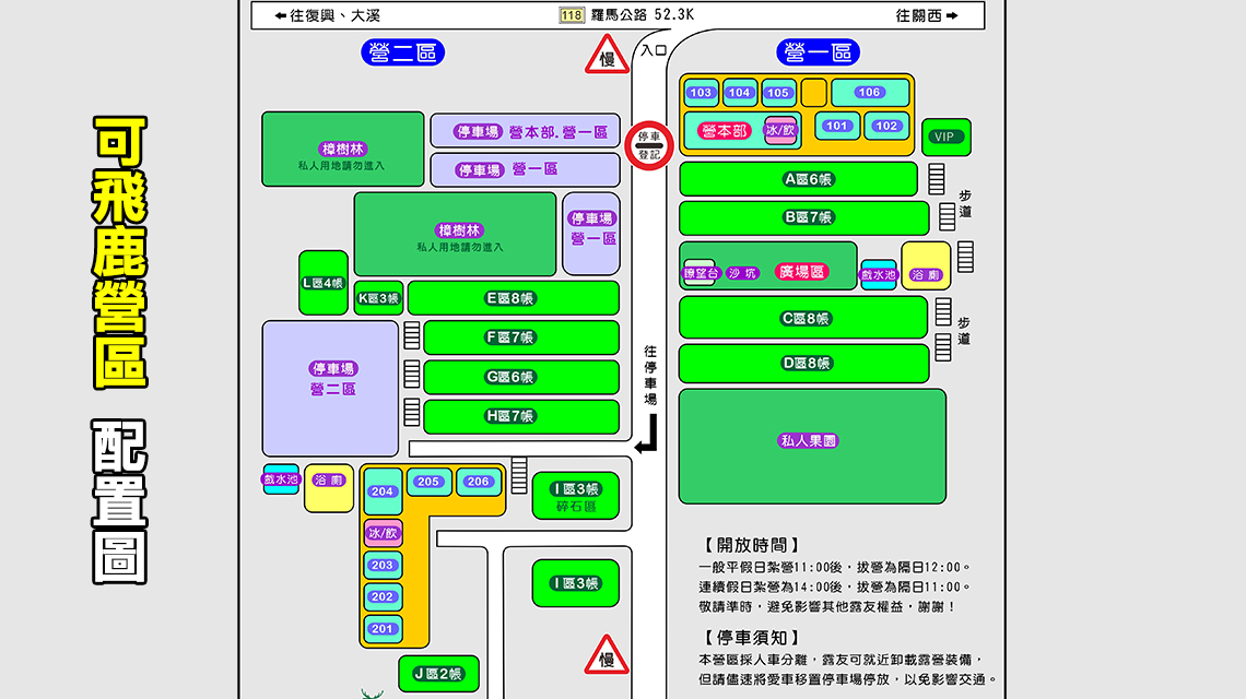 ※ 本營區車輛禁止上草皮,故不適合車露。