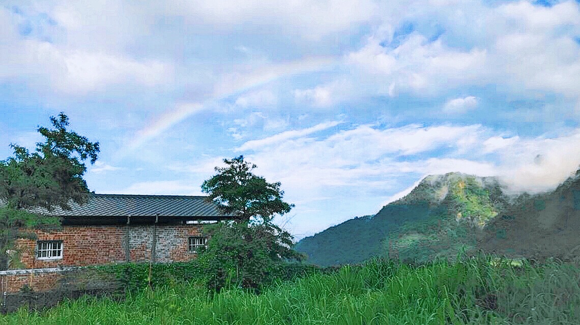 雨後的天空 白雲的後方 彩虹隱若現的身影