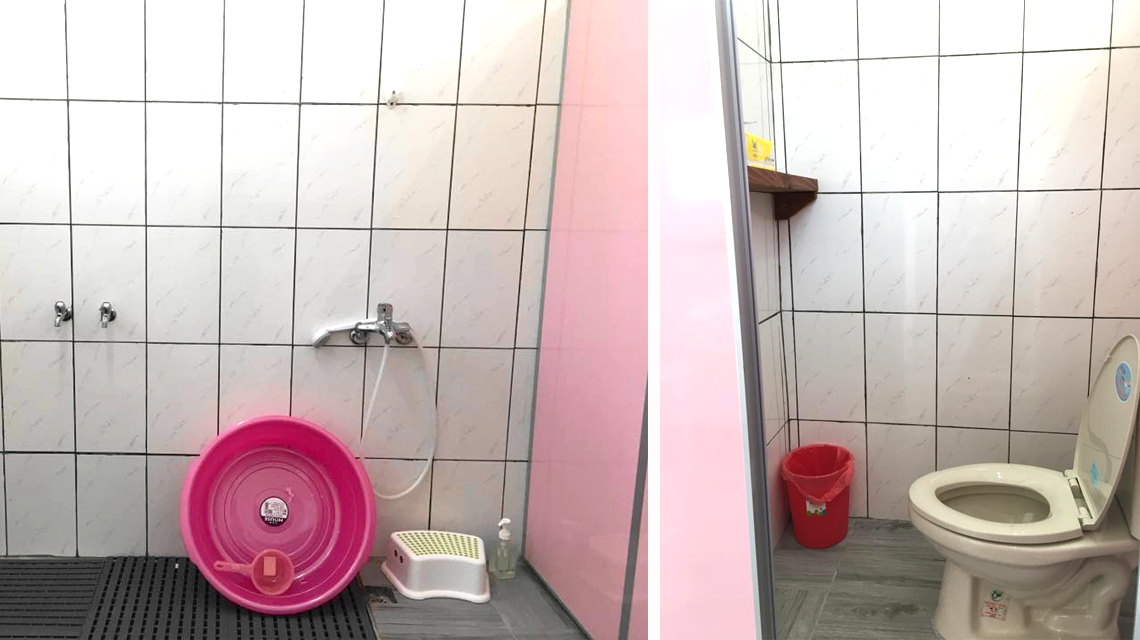 男女共用:男小便斗1座、座式浴廁合併1間、蹲式浴廁合併1間。