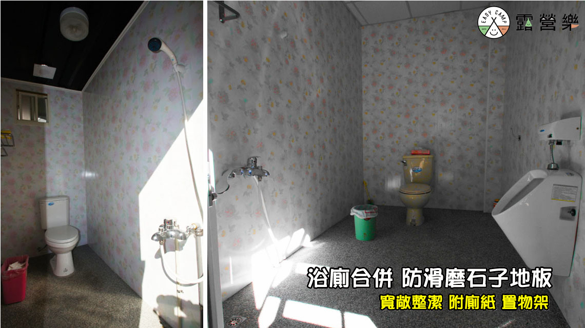 近營本部:男女共用坐式衛浴+小便斗1間(含無障礙空間)、蹲式衛浴3間。