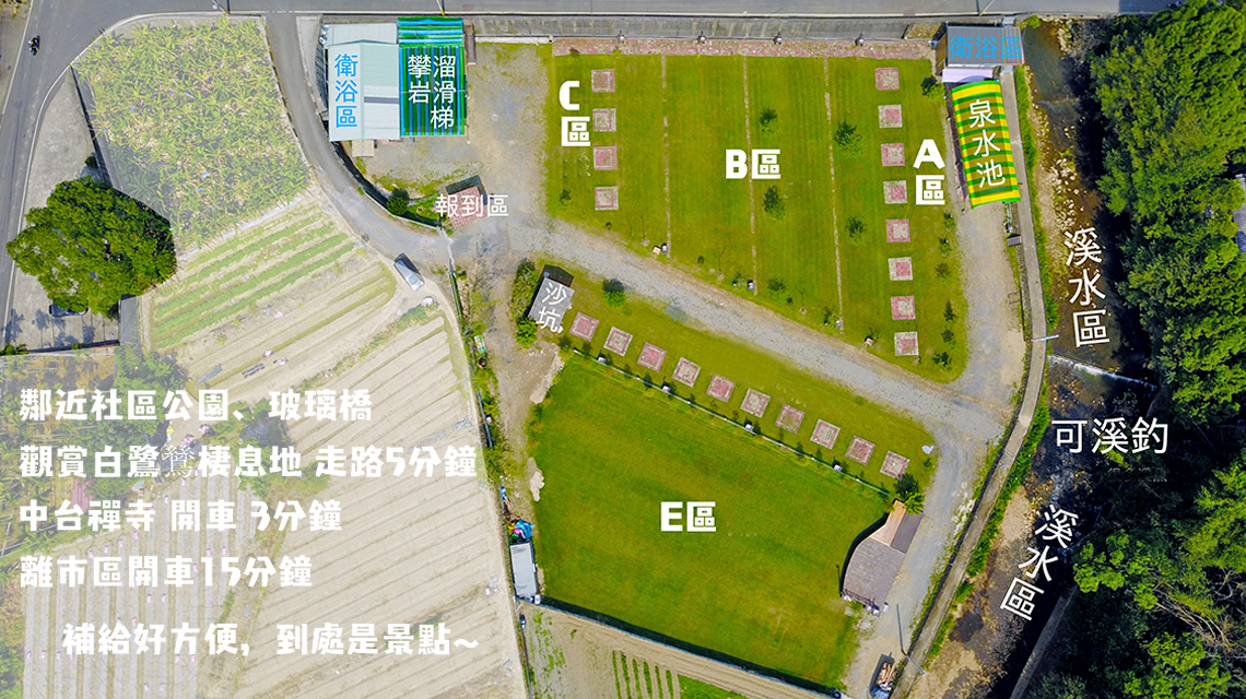 ※ 每年4月中-5月中為螢火蟲季,開車約5分鐘可到,營主會統一帶隊前往喔。