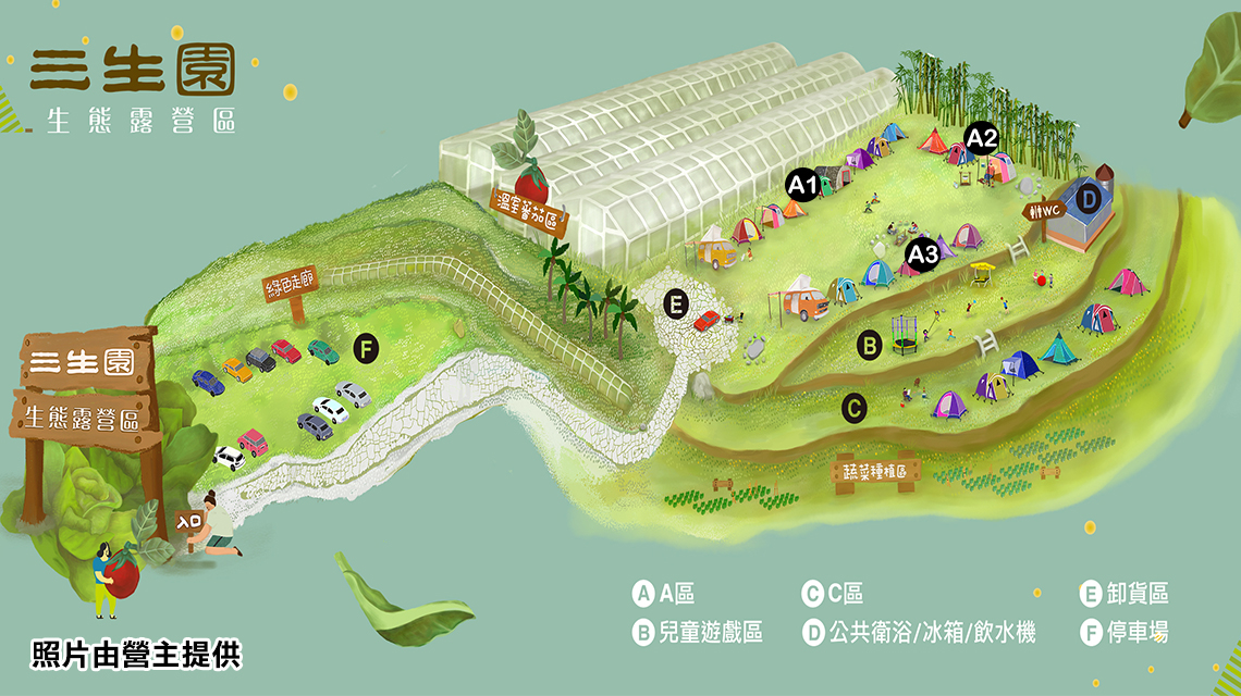※ 蔬菜種植區:高麗菜苗、百香果園,蔬果的生長狀況可至營區FB關注。其能否開放摘採,須洽營主詢問。