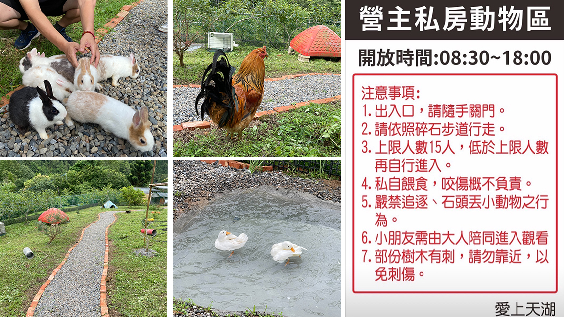 三天兩夜,孩子最喜歡玩水,造訪做多次的是可愛動物區,有很吵的鴨子跟兔子、雞,早晨孩子們撿了幾顆雞蛋回來,老闆大方的讓我們當早餐,最上方的木屋區視野很好。4月中到訪可能太早,只有少數的螢火蟲,很可惜。