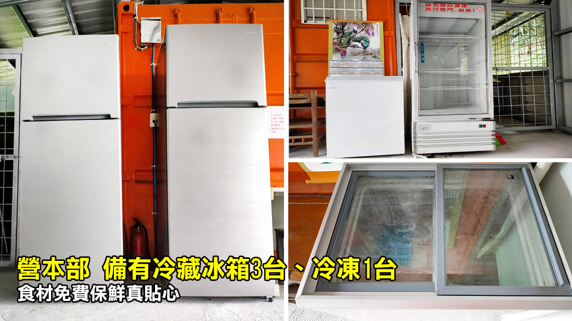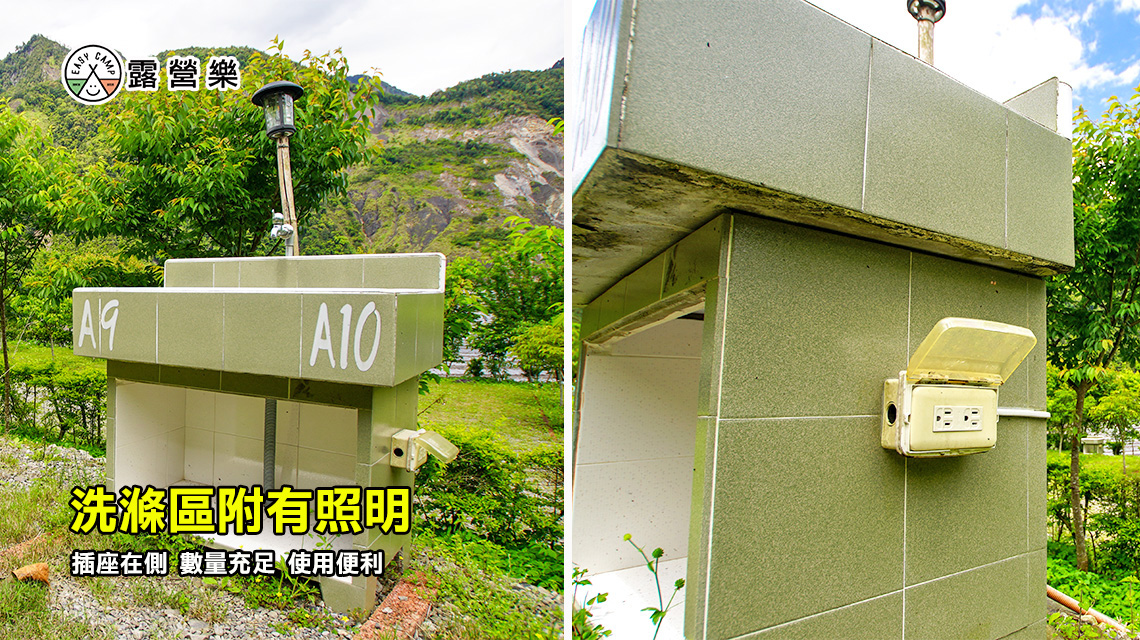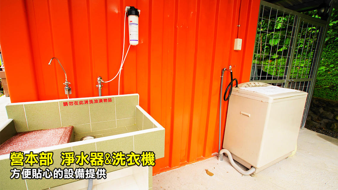 ※ 有出租露營裝備、有3台冷藏冰箱、1台冷凍、淨水器、洗衣機及兩帳共用一洗手台就在營位旁。