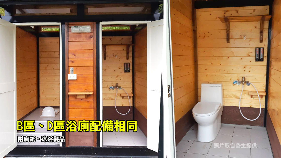 ※ 臨近衛浴(與露營區共用),附有沐浴乳及洗髮精。