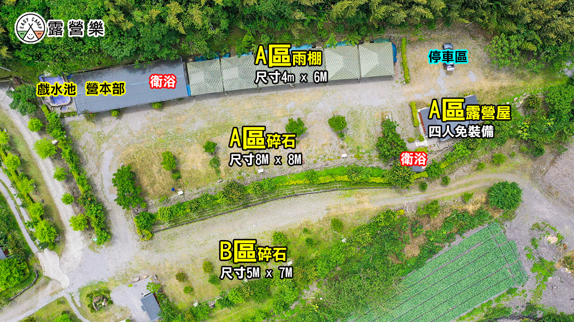 ※ A區室外:2間共用6米雨遮休憩空間、附二組一桌四椅、照明及水槽 (此區適合2間包區)。☛ 2026/1/1起限訂包區(2間)。