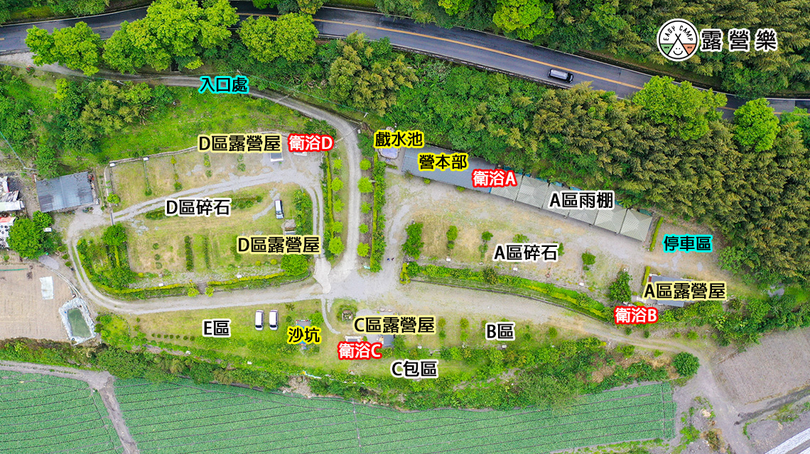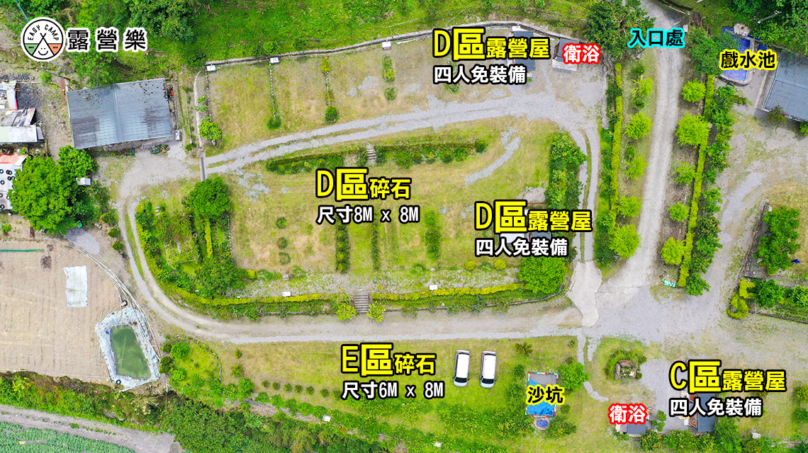 ※ D區:營位8米×8米 8帳+2間露營屋,可小包區。