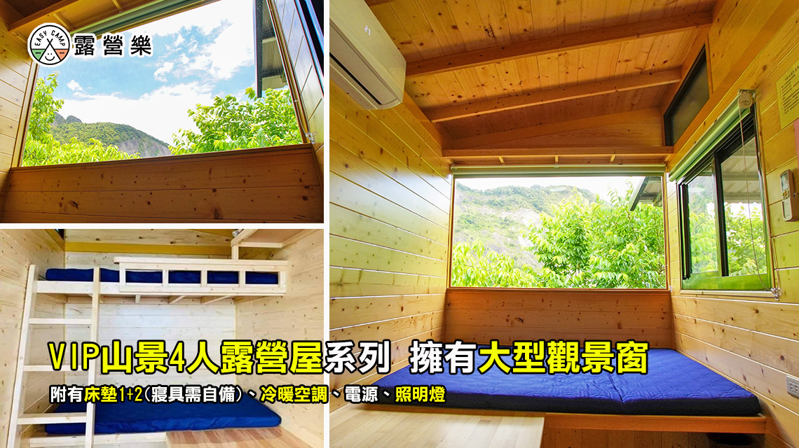 ● 【A區、C區、D區-VIP山景4人露營屋】: