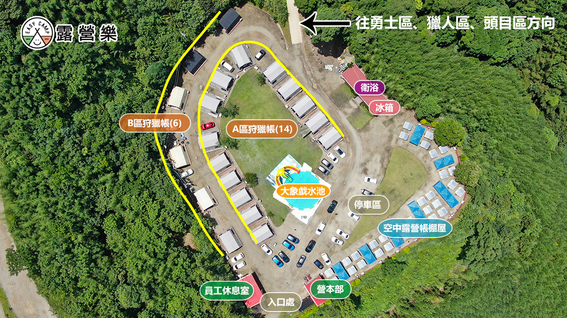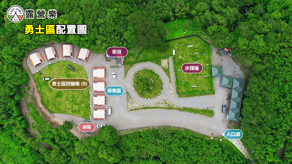 ※ 【勇士區】到【臻美營地(狩獵帳)【AB區】設有「連接步道」:步行約5分鐘,方便各區設施可以互玩。