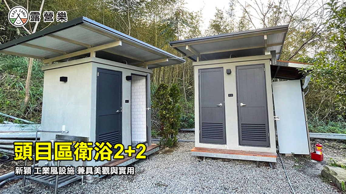 ※ 頭目區:浴室2間,廁所2間(坐1蹲1),小便斗1座,車停營位旁。