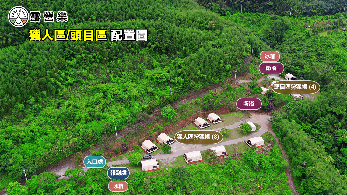※ 獵人區:浴室4間、廁所4間(坐2蹲2),小便斗2座,車停營位旁。