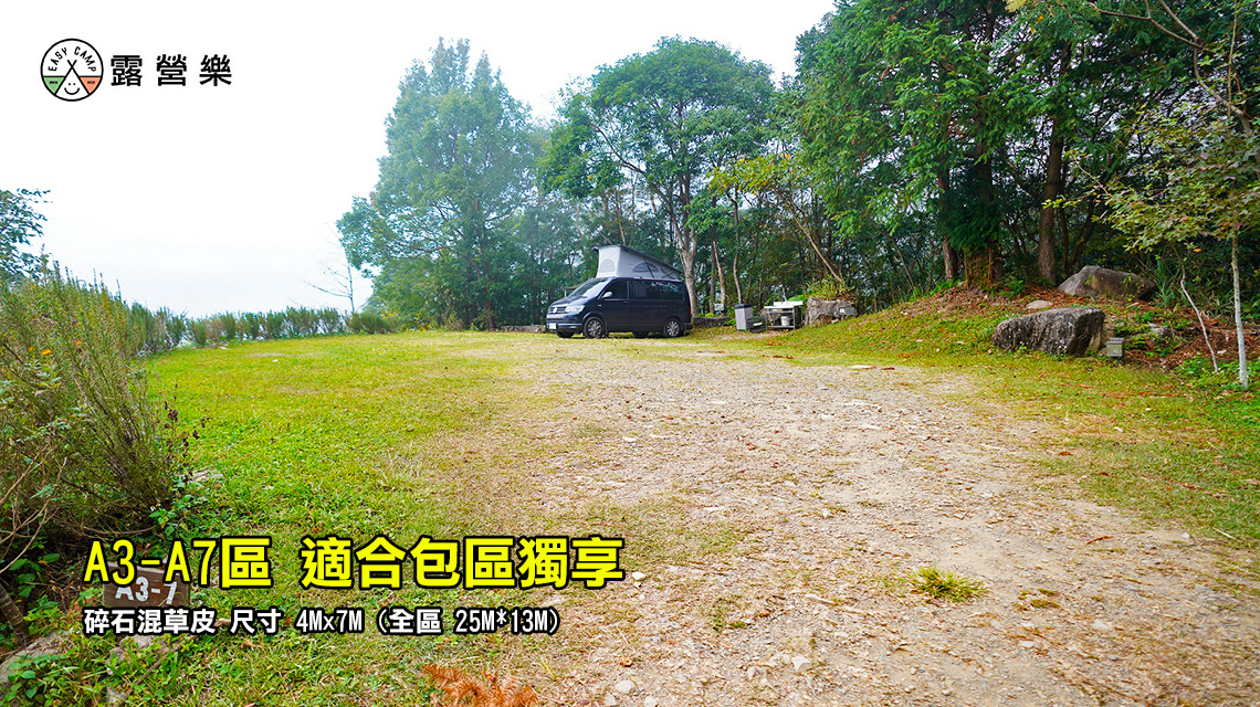 A3-A7區 | 碎石草皮 | 4Mx7M (全區25M*13M) | 5 帳 | - | $1000 | $1200 | $1200 | |