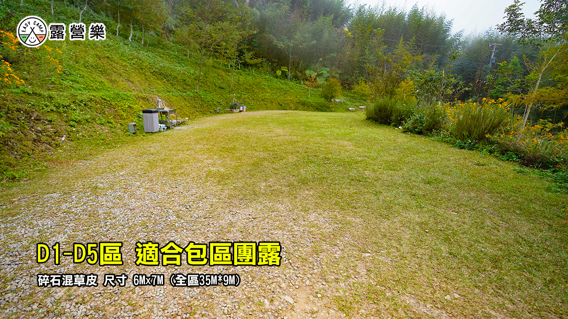 D1-D5區 | 碎石草皮 | 6Mx7M (全區35M*9M) | 5 帳 | - | $1000 | $1200 | $1200 | |