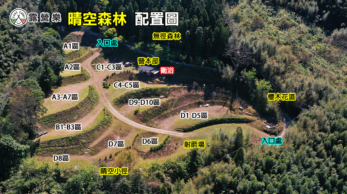 ※ 此營區可接露營拖車&露營車&車頂帳,但D6區、D7區、B1-B3區、C1-C3區除外。