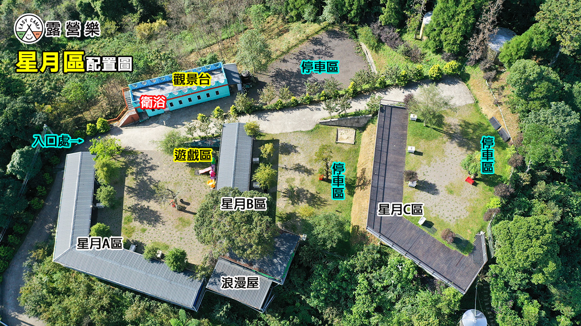 ※車停營位旁:星月B、C區,可接露營車/車頂帳。