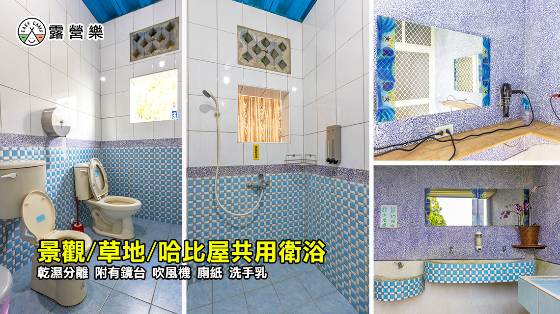 ※ 景觀區/草地區/哈比屋共用:坐廁2間、蹲廁1間、浴室4間、小便斗2座
