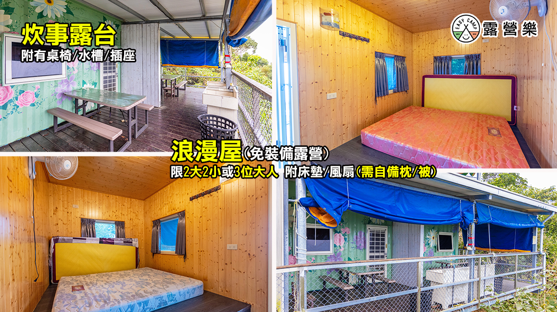 ※ 屋內附有床寢具、衛浴間、冷暖氣、桌椅、小冰箱、迎賓飲料。